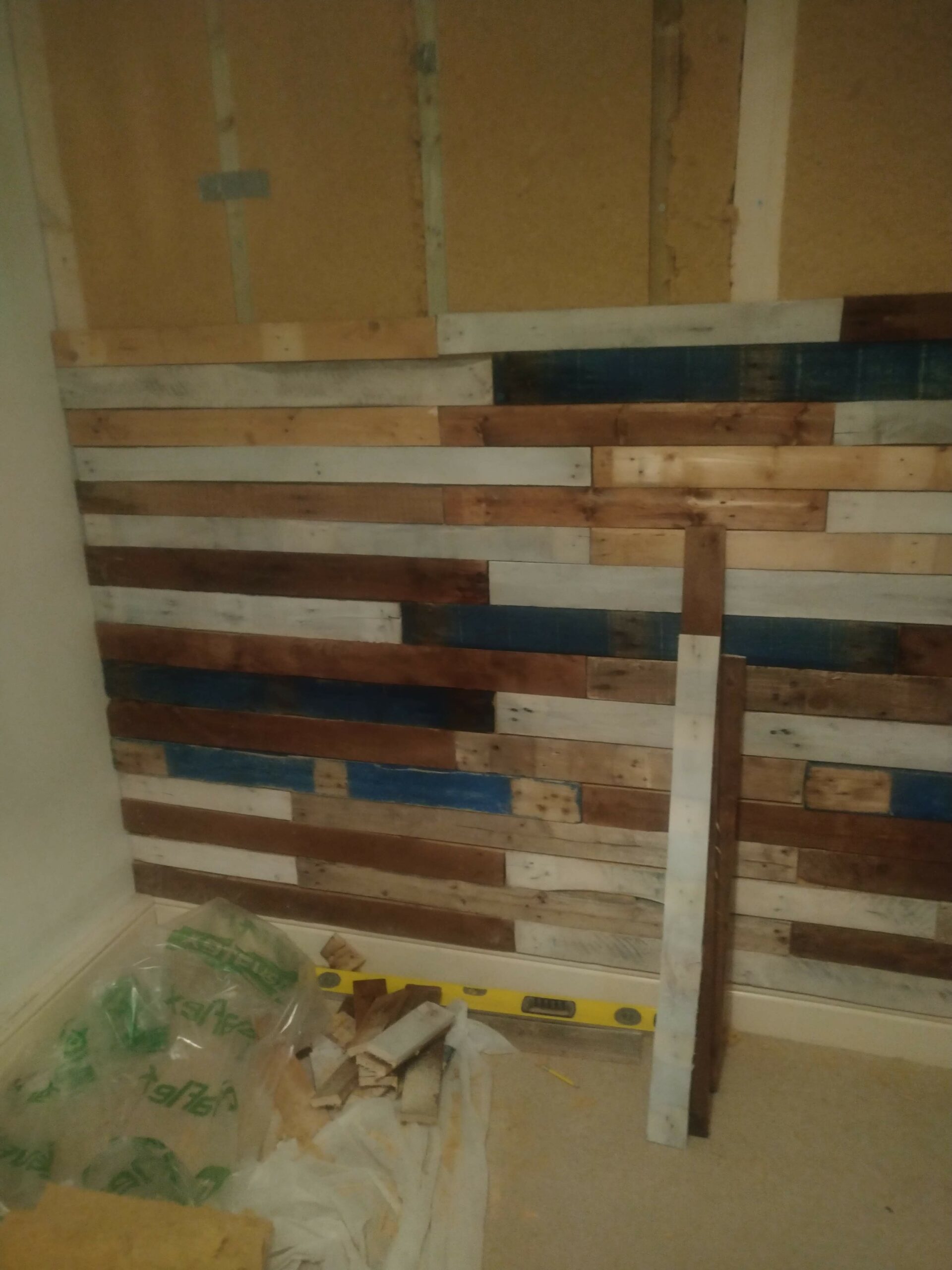 I have been keen to do something with reclaimed wood and also to add some extra insulation to the flank wall in the kids bedroom so I got a bit carried away here and produced this wall made from old pallets with 50mm of woodfibre insulation behind it. I was a bit nervous about this project as it has a bit more of a design impact than some of the other projects, it’s been in a while now though and I am so pleased with the outcome visually.