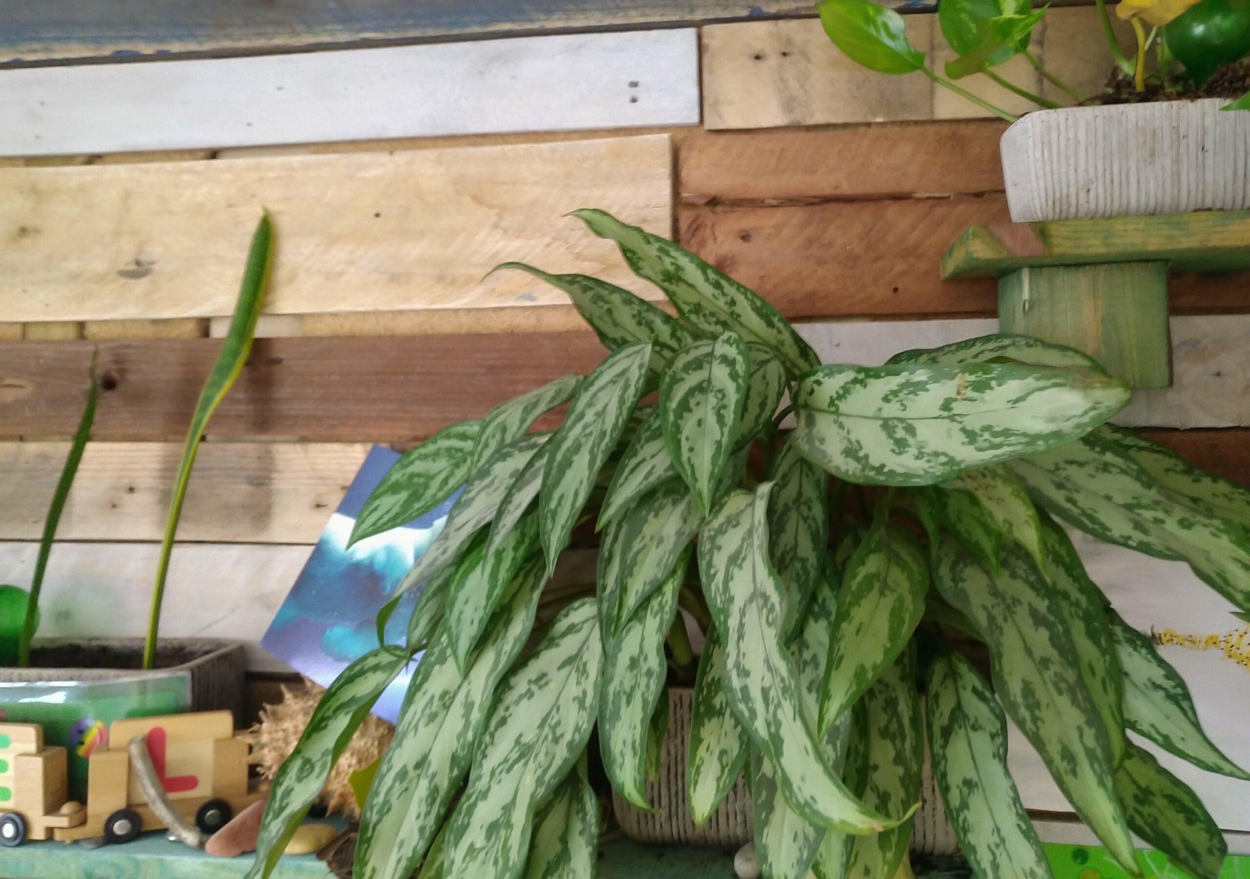 Once it was all up we put in the plants, I used Chinese evergreen, peace lily, some snake plants and a cutting from an old spider plant. I also put in a watering system! Well, I bought some globes that you fill up and they drip out over a couple of weeks, they are a bit inconsistent but a lot cheaper than some automated system. I top them up with waste water from kids water bottles and they are still growing nearly a year later.